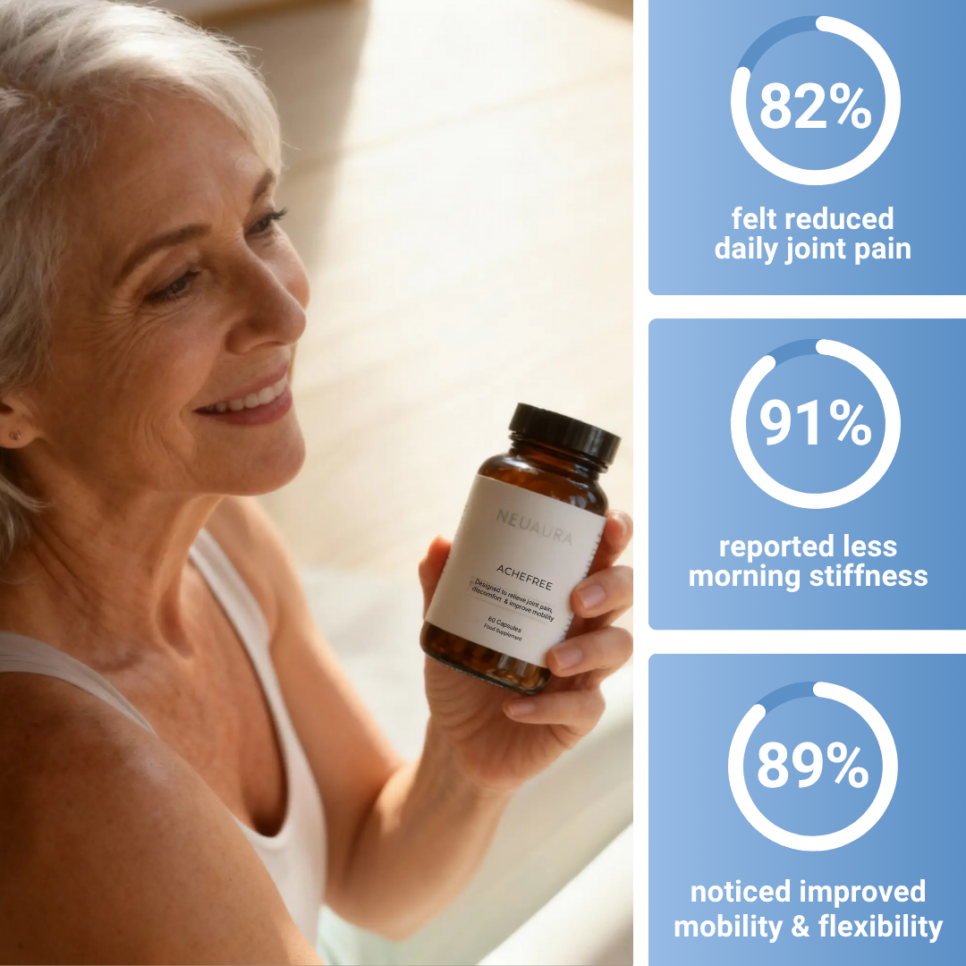 I was struggling to get out of bed every morning because of stiff, aching joints. After just a few weeks on Ache-Free, I feel like I’ve got my life back. I’m moving with ease again!